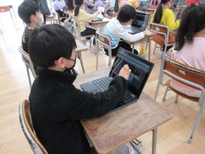 一人一台のパソコンを使って学習をしていくことになりました。今は、パソコンの使い方の学習をしています。パスワードの入力や、電源の切り方、検索の仕方等、子供たちには難しくて大変かなと思いましたが「楽しかった!」と言っていました。これからパソコンを使っていく中で、できることを増やしていきたいと思います。