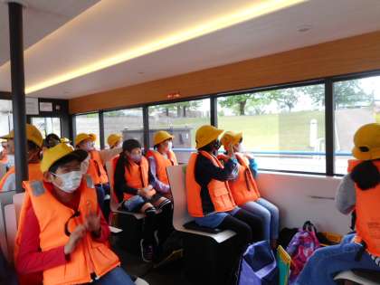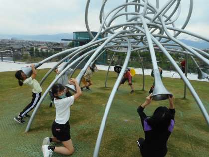 水上ラインでは、富岩運河の名前の由来を聞いたり、中島閘門で水のエレベーター体験をしたりしました。県美術館では、作品を鑑賞し、オノマトペの屋上の遊具を楽しみました。
