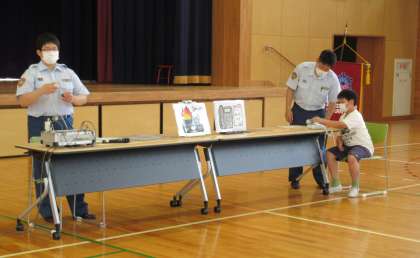 防火教室では、家でできる防火の取り組みを教わりました。また「119番通報体験」では、実際に火事等の現場を見付けたときに、どのように電話するのかを学ぶことができました。