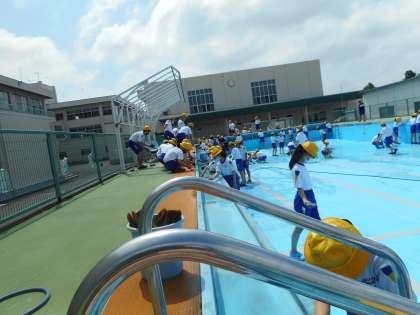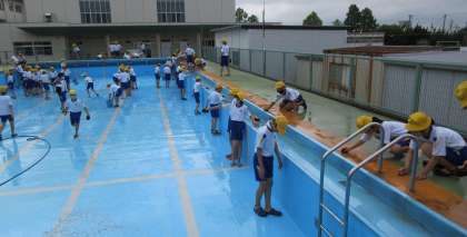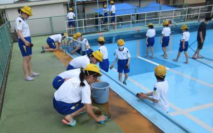 子供たちは、下級生が気持ちよくプール学習に取り組めるよう、ピカピカになるまできれいにしました。自分の担当の場所を一生懸命に掃除している姿は、すてきでした。