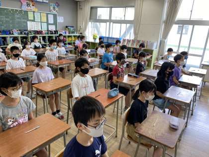 6月の「よい姿勢、正しい鉛筆の持ち方を身に付けよう」週間、今回は5年生の教室の様子を紹介します。さすが5年生、姿勢も鉛筆の持ち方も完璧です。