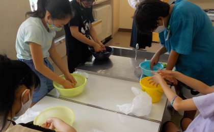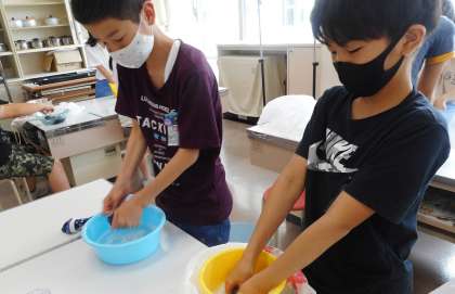 家庭科の学習で、お家から持ってきた靴下を洗濯しました。子供たちは、丁寧に手洗いすることで、汚れが落ちていることに気付き、喜びを感じていました。
