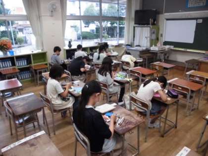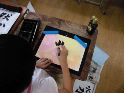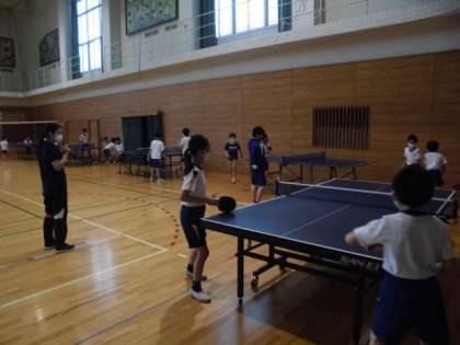 左から、卓球クラブ、絵手紙・しかけカードクラブ、書道クラブの様子です。