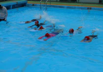 7月27日(火)にJSSから講師の先生をお招きし、水泳教室を行いました。先生方から呼吸の仕方や手の動かし方を丁寧に教えていただき、子供達は練習を通して見違えるように上達しました。一人一人のできることが増え、充実した時間になりました。