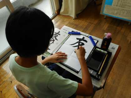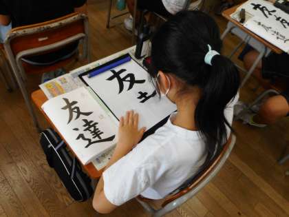 「しんにょう」のある文字を練習しています。つくりと部首の配置を考えて書けるように、学習していきます。