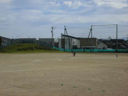 朝早くから業者の方が一人で、広いグラウンドにイラストを描いてくださいました。
