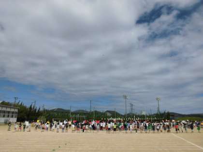 いよいよ3限目、全校児童がそれぞれ担当の色画用紙を上空の飛行機に向け、写真撮影をしました。上空から見たら、どのようなイラストが出来上がっているのでしょう。仕上がりが楽しみですね。