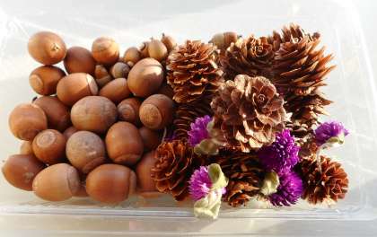 どんぐり、せんにちこう、キンエノコロ、まつぼっくりです。近くの公園などで見かけられたらぜひ集めておいてください。