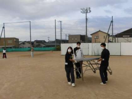 明日は、いよいよ運動会。子供たちが帰った後、教職員で運動会の準備を行いました。明日、みなさんが全力を出し切ることができるよう応援しています。