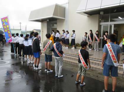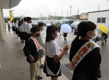 10月13日(水)から15日(金)の朝に、小中連携のあいさつ運動が行われています。堀川南小学校を卒業した堀川中学校の先輩方と、5年生と6年生の運営委員のみんなで合同であいさつ運動を行いました。中学校の先輩方の元気にあいさつをする姿を見て、今堀川南小学校で大切にしている「ぽかぽかあいさつ」で運営委員も元気よくあいさつを全校に届けていました。