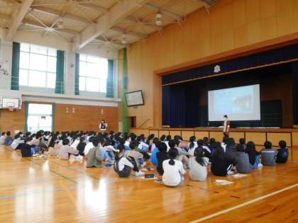 ついに一週間後となった宿泊学習に向けて、スライドとしおりを照らし合わせながら真剣に聞いていました。