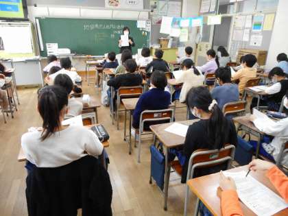 10月27日(水)に「とやま環境チャレンジ10」の後期教室が実施されました。地球温暖化について、改めて地球が危機的な状況に陥っており、早急な対応が必要だと再確認しました。また、堀川南小学校4年生のチャレンジ10の取り組みの結果をまとめたものを見せてもらいました。4週間の取り組み期間中だけで、サッカーボール491,025個分、杉の木351本分の二酸化炭素を減らすことができたことを知り、大きな喜びをもち、これからもチャレンジを継続していこうと考えた供たちでした。