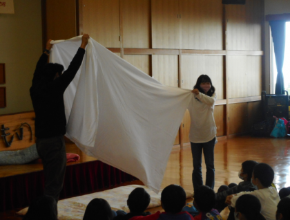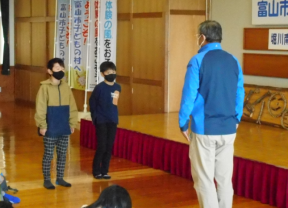 入所式では、所の方からこどもの村での過ごし方や寝具の使い方について話を聞きました。