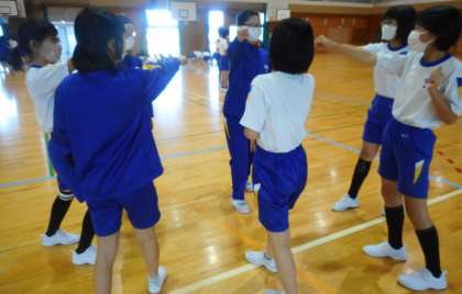 1年生のときから教えていただいている加藤先生に今年もダンスを教えていただきました。8カウントや16カウントを自分たちで動きを考えて、組み合わせました。どのグループも個性豊かなダンスに仕上がり、とても楽しそうに披露していました。