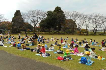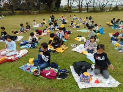 秋空の下、お弁当を食べています。