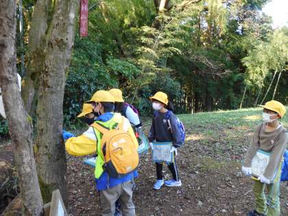 11月4日(木)の午前中に、森の木オリエンテーリングを行いました。友達と協力し合って、ポイントを回り、たくさんの種類の木の特徴を調べました。