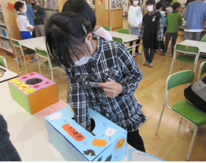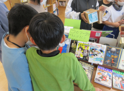 読書旬間に図書委員会がおみくじを企画しています。トリプル大吉を引き当てたラッキーな子供たちもいました。