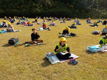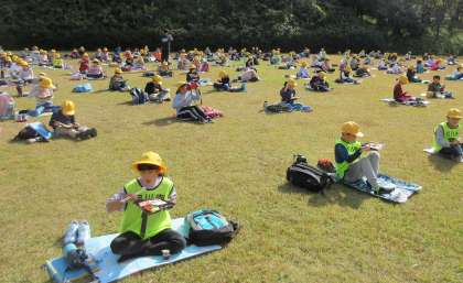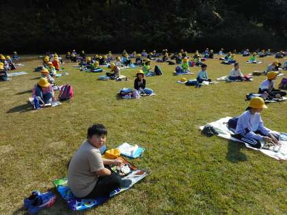 11月4日(木)の昼食は、中庭でお弁当を食べました。自然に囲まれた中、美味しそうに食べる姿が見られました。