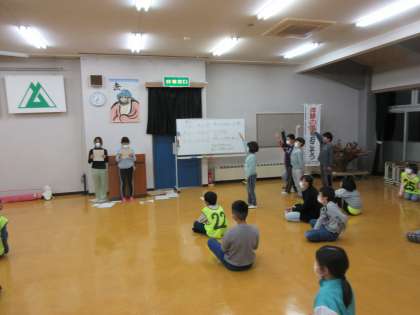 11月4日(木)の夜に、集会室で集会を開きました。感染症対策のために3グループに分かれて行いました。活動係が計画を立て、進行を行いました。友達と仲をを深める姿が見られました。