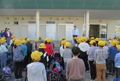11月5日(金)の学校到着後に、体育館前で帰校式を行いました。大きなけがや病気もなく、無事に帰ってこれたことや、宿泊学習で学んだことを代表の人が話してくれました。また、校長先生から、2日間のがんばりを褒めていただきました。