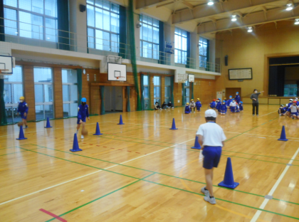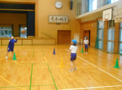 バスケットボールの学習では、ドリブルやパスの練習をしました。コツをつかんで、上手にドリブルすることができました。