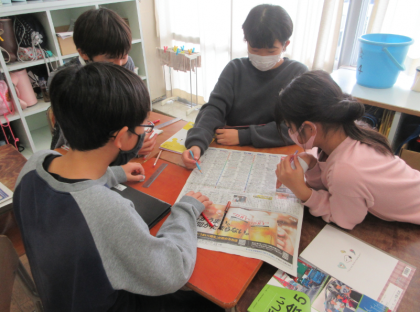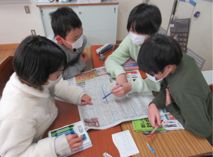 新聞のテレビ欄を見て、どんな番組が多いのかを調べました。朝の時間にニュース番組が多いことや番組と番組の間に短いニュース番組があることなど、ニュース番組がよく放送されていることに気付いていました。
