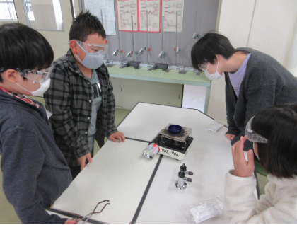 食塩とミョウバンの水溶液を蒸発させる実験をしました。水が蒸発して、溶けていた食塩やミョウバンを取り出すことができました。