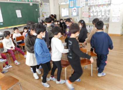 お楽しみ会の様子です。係ごとに出し物を考え、楽しいゲーム等をしました。