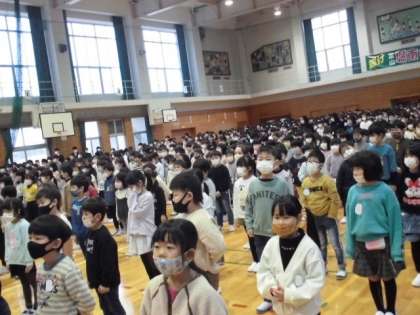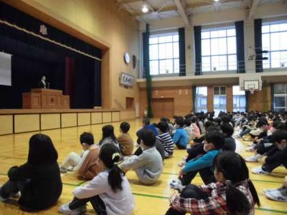 校長先生からは、「今年は何度でもチャレンジする年にしましょう」というお話がありました。その後、校歌を静かに聴きました。