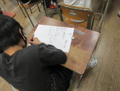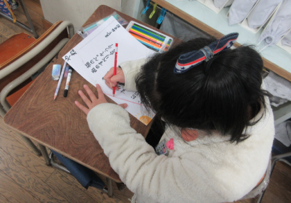 詩集を読み、その中からお気に入りの詩を見つけて視写をしました。詩の周りには、詩からイメージした絵を描きました。