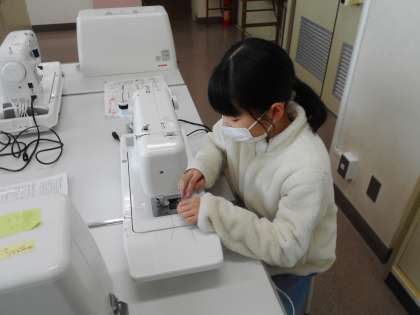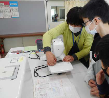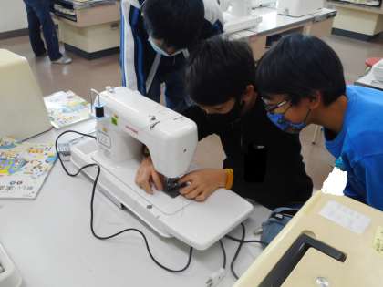 家庭科の学習では、安全なミシンの使い方を学び、ランチョンマットを作ります。