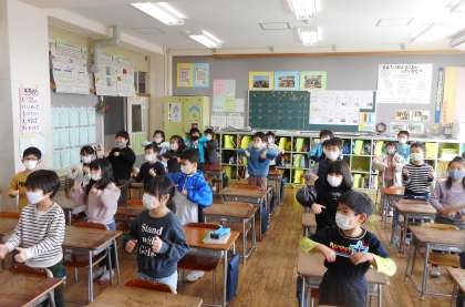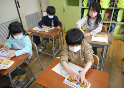 先日、レイチェル先生と一緒に外国語活動を行いました。アルファベットを発音したり、オリジナルの虹をつくって発表したりしました。子供たちは、楽しそうに自分の考えた虹を見せ合っていました。