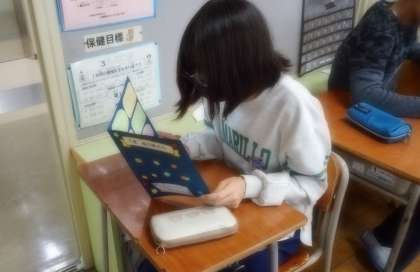 1〜5年生のふれあい班のメンバーからお祝いのメッセージをいただきました。6年生は、うれしそうに一人一人のメッセージを読んでいました。