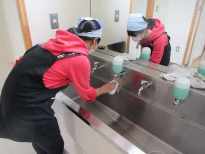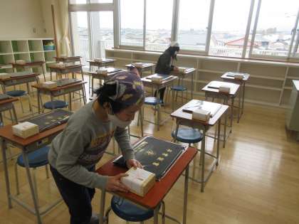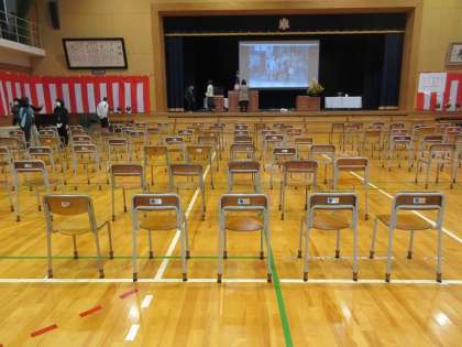 明日の卒業式に向けて、教室の掃除や飾り付け、体育館の準備を行いました。明日の卒業式には参加できませんが、心を込めて準備しました。