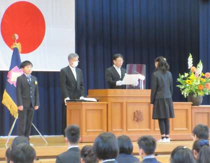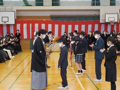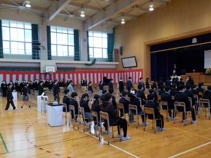 今年の卒業式も感染症対策のため、これまでとは異なる形で式を行いました。会場全体で大きな感動を味わうことができました。コロナ禍の1年を、創意工夫と持ち前の明るさで、何事にも一生懸命に取り組んできた子供たちが、「夢に向かって」羽ばたいていくことを願っています。