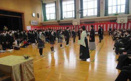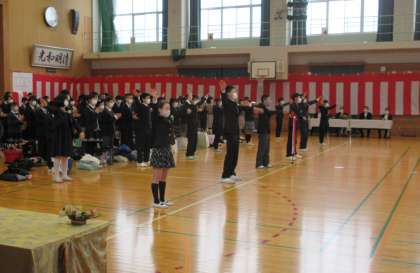 卒業式の後に離校式を行いました。堀川南小学校のさらなる発展を願い、エールを送りました。
