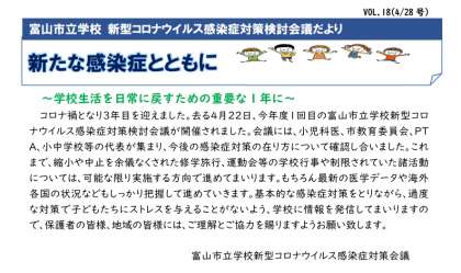 富山市立学校 新型コロナウイルス感染症対策検討会議だよりVol.18が届きました。