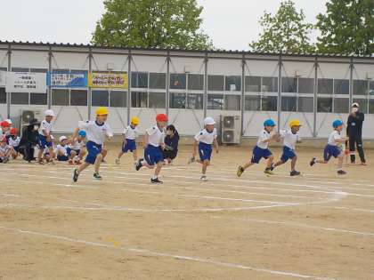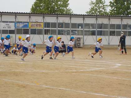 徒競走の様子です。腕を大きく振り、ゴールまで力一杯駆け抜けました。