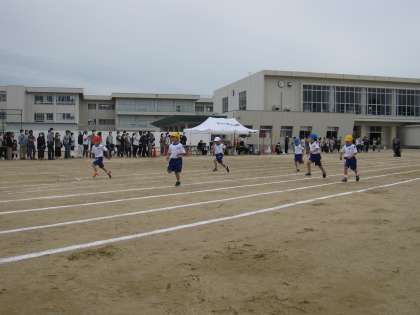 入学して初めての運動会。徒競走では、ゴールを目指して一生懸命に走りました。
