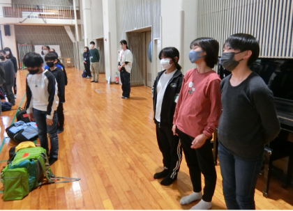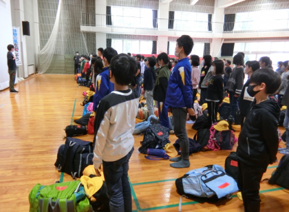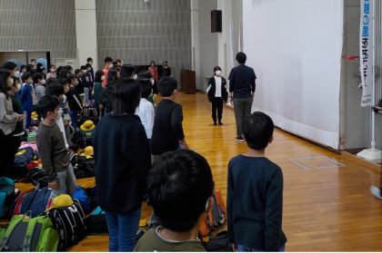 退所式では、所の方の話を聞きながら2日間の宿泊学習を振り返りました。