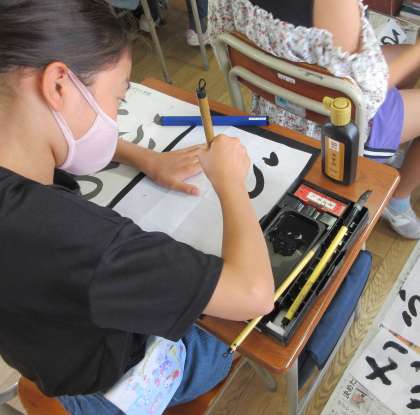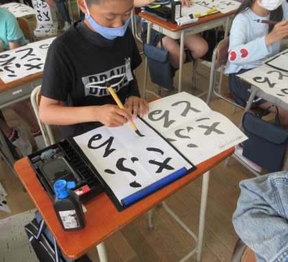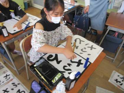 書写の学習では、「ふるさと」を書きました。正しい姿勢で丁寧に清書しました。