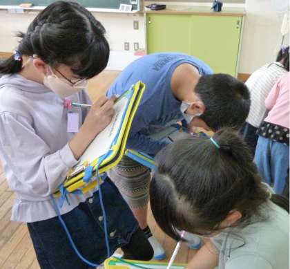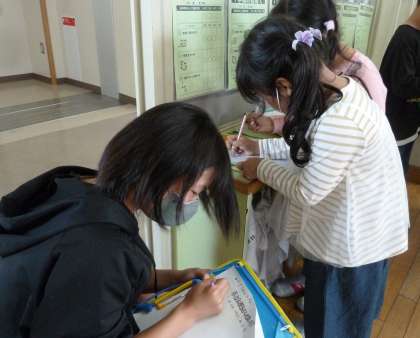 ふれあい活動では、他学年と自己紹介やサイン交換をしました。