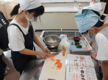 3組と4組も調理実習を行いました。準備から調理、片付けまでてきぱきと進めていました。