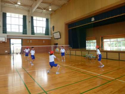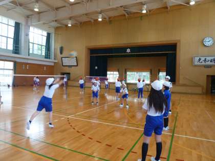 体育科ではソフトバレーボールを行っています。