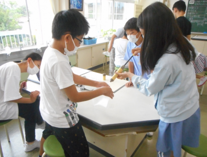 理科の学習では、吐いた息に含まれる二酸化炭素の量を気体検知管等を使って調べました。