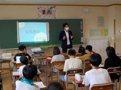 租税教室が行われました。税金の使われ方や、税金がなかったらどんなことが困るのかを学習しました。
