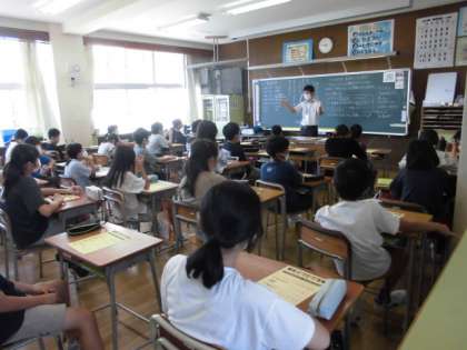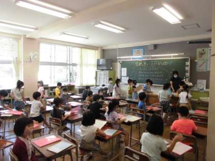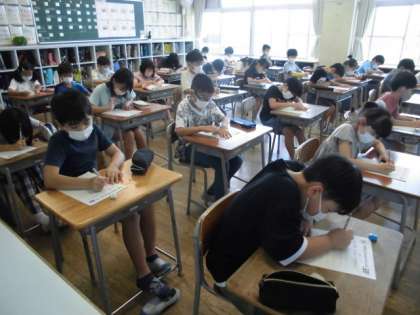 学級で過ごす子供たちの様子です。先生の話を真剣に聞いたり、2学期の目当てを書いたりして、2学期を始める準備は万端のようです。
