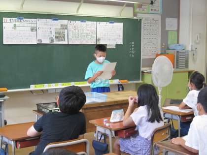 夏休みに頑張って仕上げた自由研究について発表し、感想を交流しました。