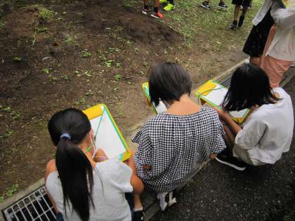 触った感触やにおい、葉の大きさ等、詳しくワークシートに書いていました。