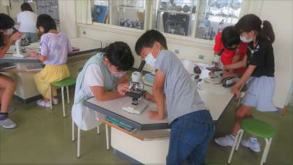 ヘチマやあさがおの花粉を採取し、顕微鏡で詳しく調べました。